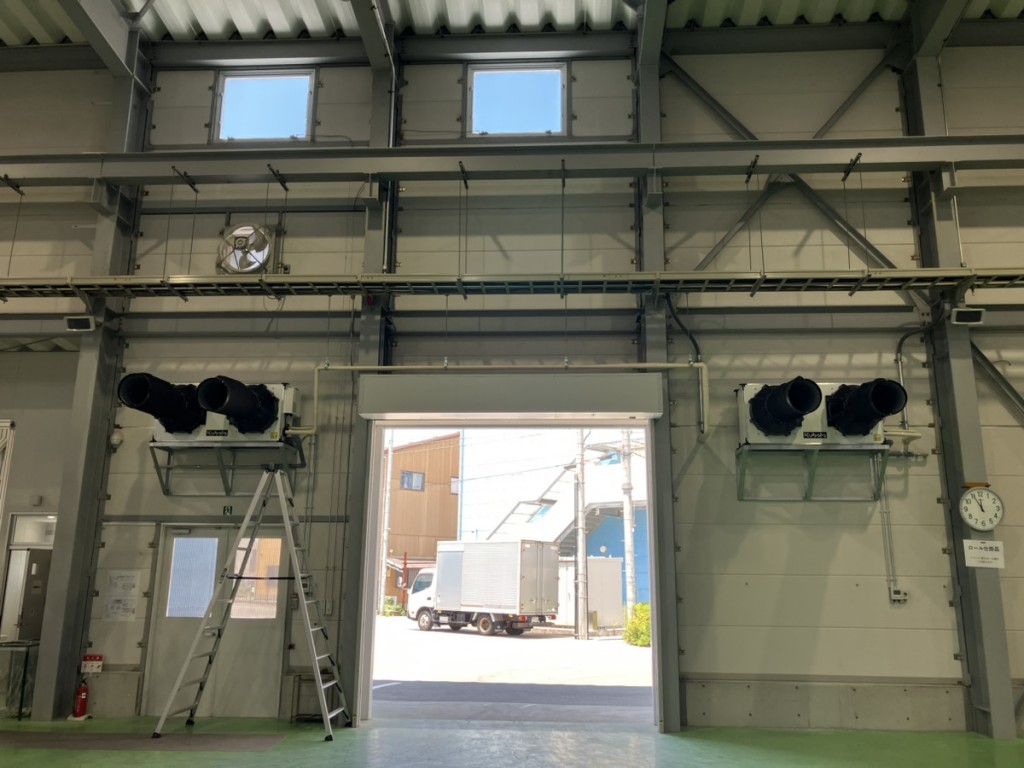 お客様:自動車部品製造工場 ご相談内容: ・空調機がなく、夏場はスポットエアコンのみ ・工場内は日中40℃まで上昇 ・従業員が快適に作業できる環境を整えたい ご導入内容:エリア空調機 2台